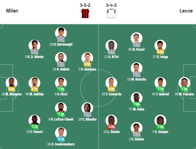 - AC Milan thắng 7, hòa 3 trong 10 trận gặp Lecce gần đây.