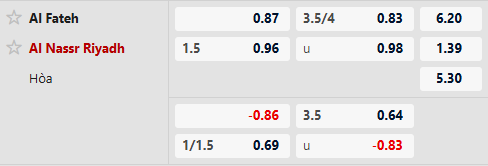 Thông tin tỷ lệ Al Fateh vs Al Nassr: