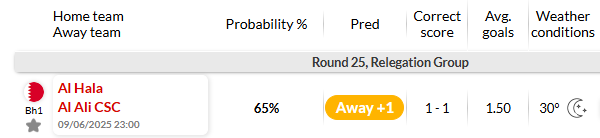 Toàn bộ 5 trận gần đây thuộc giải VĐQG Bahrain của Al Ali đều không xuất hiện nhiều hơn 2 bàn thắng. Kịch bản thực sự quen thuộc này dự kiến tái diễn khi Al Ali so tài cùng Al Hala vào thứ Hai (9/6).
