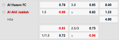 Thông tin tỷ lệ kèo Al-Hazem vs Al-Ahli Saudi:
