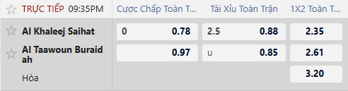 Thông tin tỷ lệ bóng đá Al-Khaleej vs Al Taawoun: