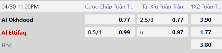 Thông tin tỷ lệ kèo Al Okhdood vs Al Ettifaq: