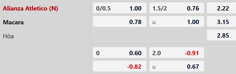Thông tin tỷ lệ kèo Alianza Atletico vs Macara: