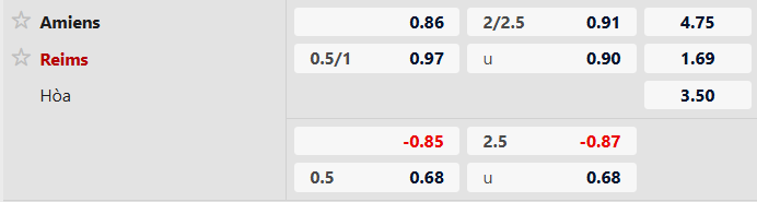 Phải chơi trên sân khách nhưng với vị thế của mình, dĩ nhiên Stade Reims sẽ là đội được đánh giá cao hơn với tỷ lệ chấp 3/4 bàn. Lần gặp nhau gần nhất, Stade Reims đã có được thắng lợi 3-2 trước Amiens. Trước đối thủ quá yếu, không ngạc nhiên nếu đội khách sẽ thêm lần nữa được hưởng niềm vui chiến thắng.