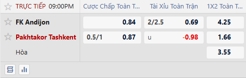 Thông tin tỷ lệ Andijan vs Pakhtakor: