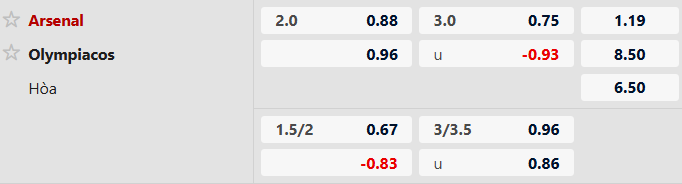 Thông tin tỷ lệ kèo bóng đá Arsenal vs Olympiakos: