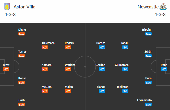 Đội hình dự kiến Aston Villa vs Newcastle: