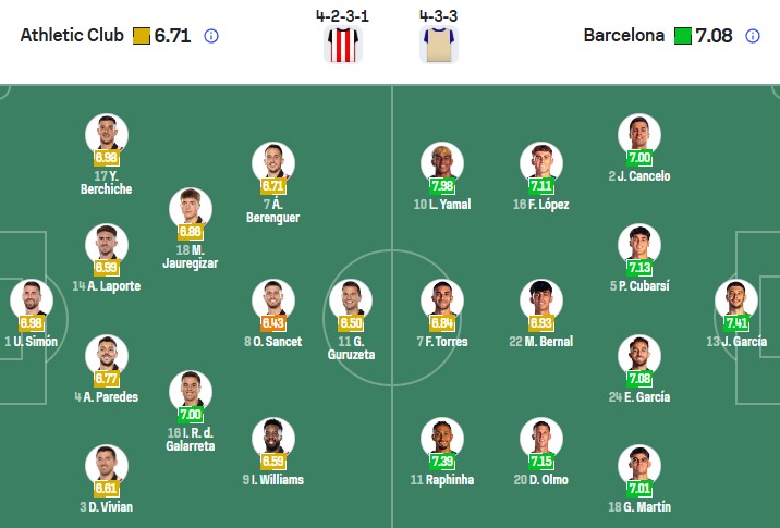 Đội hình dự kiến Athletic Bilbao vs Barcelona: