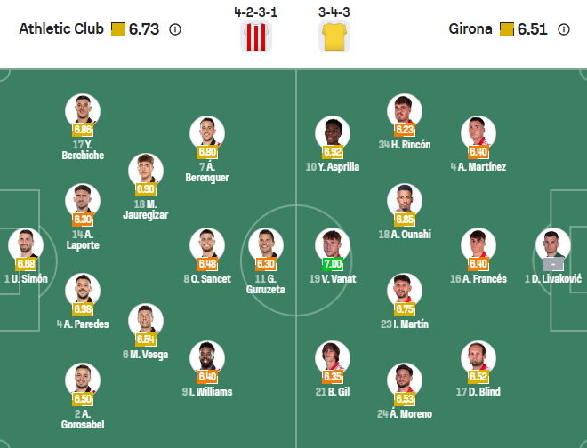 Đội hình dự kiến Athletic Bilbao vs Girona: