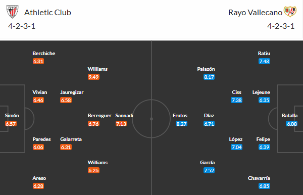 Đội hình dự kiến Athletic Bilbao vs Rayo Vallecano: