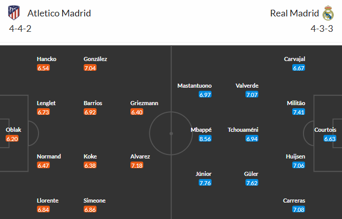 Đội hình dự kiến Atletico Madrid vs Real Madrid: