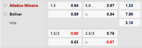 Thông tin tỷ lệ kèo Atletico Mineiro vs Bolivar: