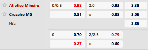 Thông tin tỷ lệ kèo Atletico Mineiro vs Cruzeiro: