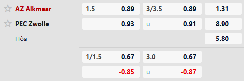 Thông tin tỷ lệ kèo AZ Alkmaar vs Zwolle: