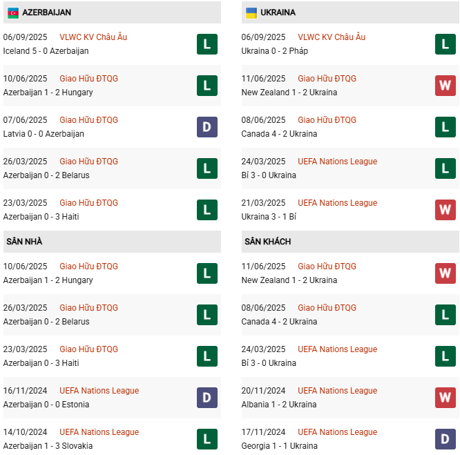 Thống kê phong độ Azerbaijan vs Ukraine: