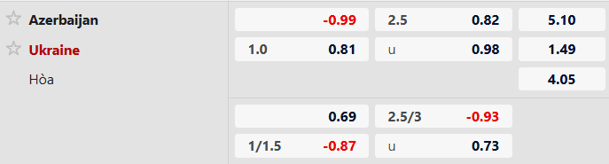 Thông tin tỷ lệ bóng đá Azerbaijan vs Ukraine: