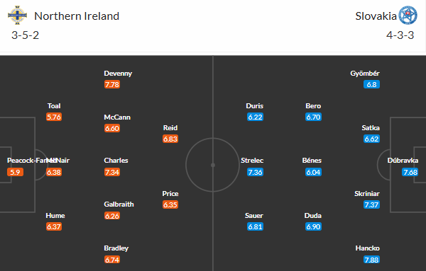 Thông tin lực lượng Bắc Ireland vs Slovakia: