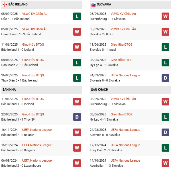 Thống kê phong độ Bắc Ireland vs Slovakia: