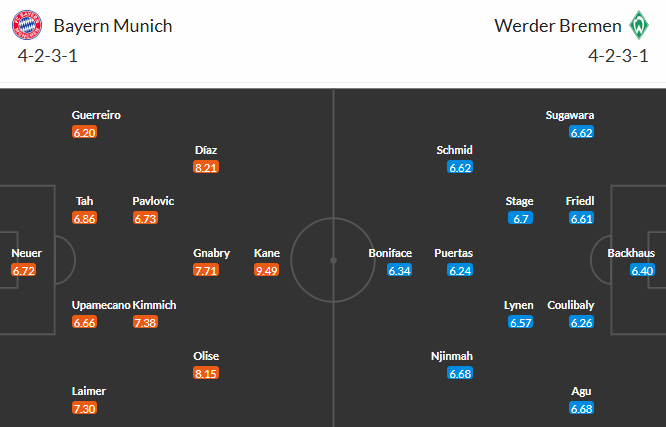 Đội hình dự kiến Bayern Munich vs Werder Bremen: