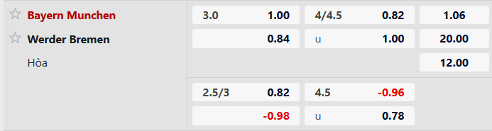Thông tin tỷ lệ kèo bóng đá Bayern Munich vs Werder Bremen: