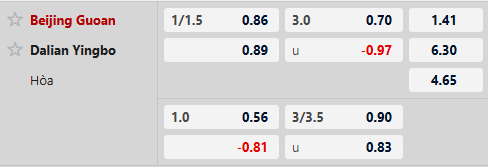 Thông tin tỷ lệ Beijing Guoan vs Dalian Yingbo: