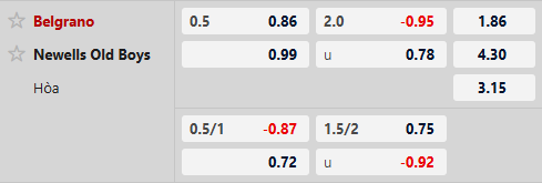 Thông tin tỷ lệ Belgrano vs Newells Old Boys: