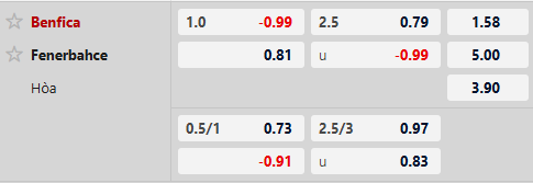 Thông tin tỷ lệ kèo bóng đá Benfica vs Fenerbahce: