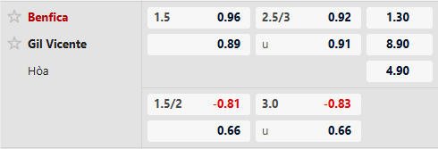 Thông tin kèo bóng đá Benfica vs Gil Vicente: