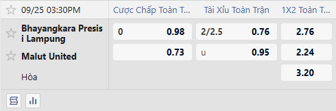Thông tin tỷ lệ Bhayangkara vs Malut United: