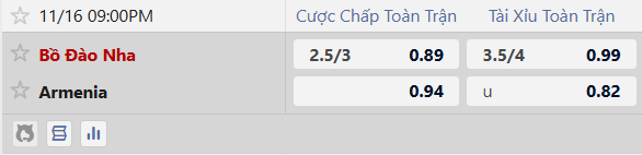 Thông tin tỷ lệ kèo bòng đá Bồ Đào Nha vs Armenia: