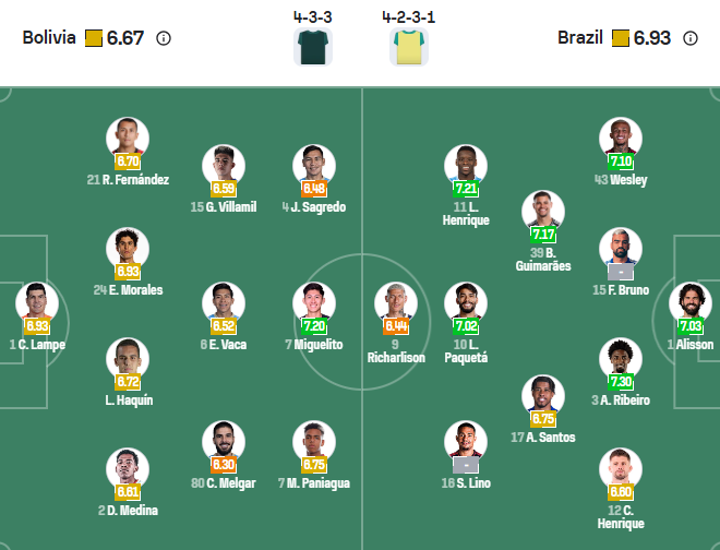 Thông tin lực lượng Bolivia vs Brazil: