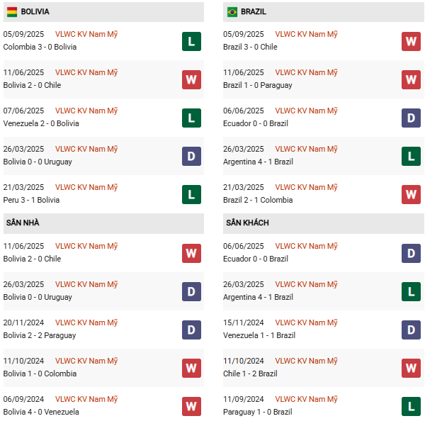 - Trên sân nhà, Bolivia thắng 1, thua 2 trước Brazil.