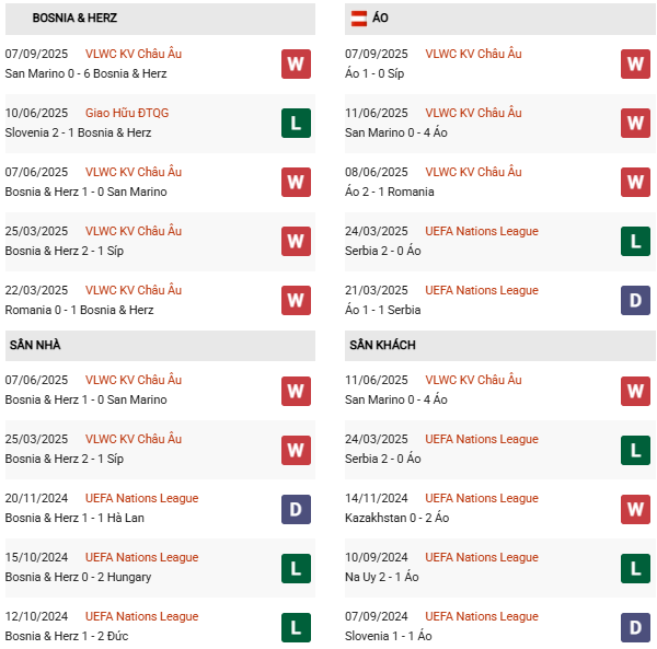 Trong khi đó, đội khách Áo chính là ứng cử viên số 1 cho tấm vé đến thẳng vòng bảng World Cup 2026 ở bảng H. Dù chì mới chơi 3 trận nhưng Áo đã nhanh chóng khẳng định được sức mạnh khi thu về trọn vẹn 9 điểm, tạm vượt lên đứng nhì bảng, kém Bosnia 3 điểm nhưng chơi ít hơn đối thủ 1 trận.