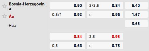 Bosnia đang chơi quá ổn suốt từ đầu giai đoạn vòng loại. Tuy nhiên, đẳng cấp và vị thế của Áo vẫn nhỉnh hơn đôi chút. Do vậy, không ngạc nhiên khi đội khách được đánh giá cao hơn với tỷ lệ chấp 3/4 bàn. Dù vậy, nên nhớ rằng Áo chưa bao giờ đánh bại được Bosnia trong quá khứ với 1 thất bại và 2 trận hòa. Với bối cảnh đội chủ nhà đang thăng hoa, viễn cảnh Áo bị cầm hòa và thua luôn kèo châu Á hoàn toàn có thể xảy ra.