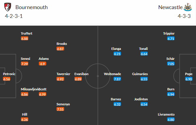 Đội hình dự kiến Bournemouth vs Newcastle: