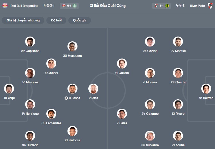 Đội hình dự kiến Bragantino vs River Plate:
