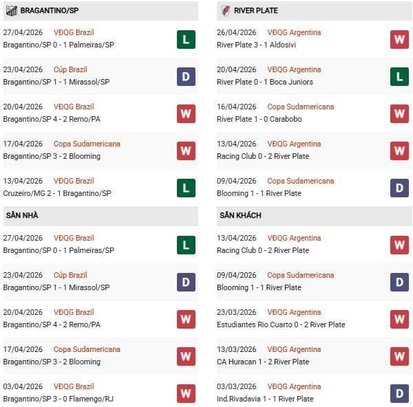 Thống kê phong độ Bragantino vs River Plate: