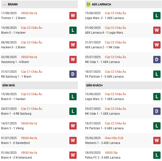 Thành tích đối đầu Brann vs AEK Larnaca: