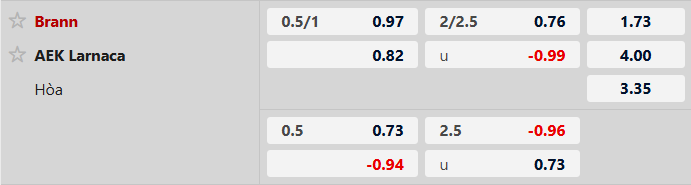 Thông tin tỷ lệ bóng đá Brann vs AEK Larnaca: