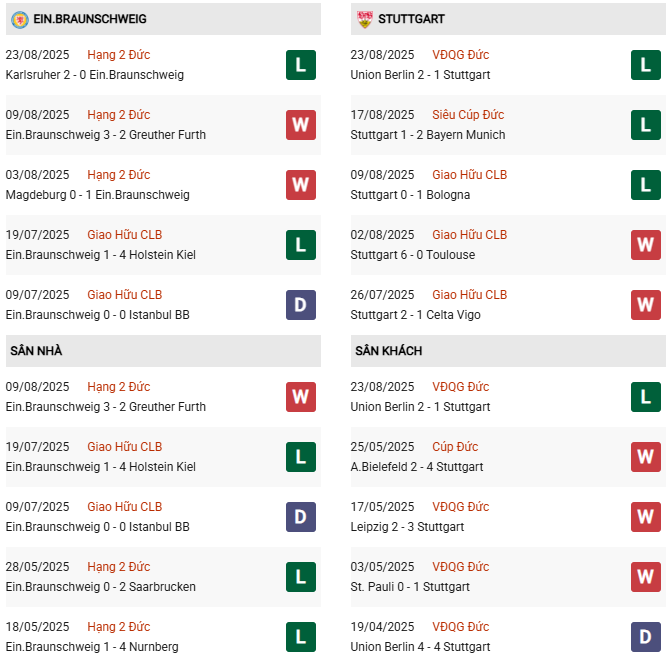 Thống kê phong độ Braunschweig vs Stuttgart: