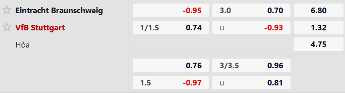 Thông tin tỷ lệ bóng đá Braunschweig vs Stuttgart: