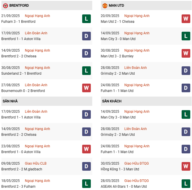 - Trên sân nhà, Brentford thắng 2, thua 1 trước Man Utd.