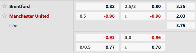 Thông tin tỷ lệ kèo bóng đá Brentford vs Man Utd:
