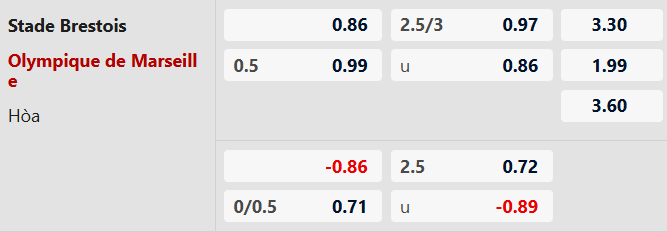 Thông tin tỷ lệ bóng đá Brest vs Marseille: