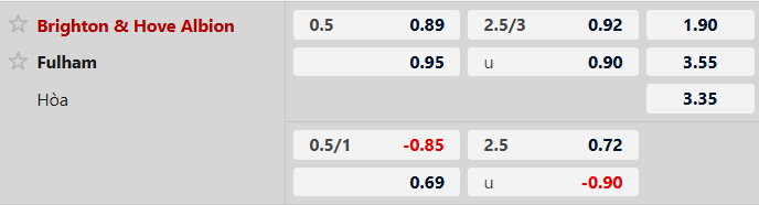 Brighton chấp 1/2 bàn cả trận. Seagulls bước vào trận đấu với sự tự tin cao sau khi toàn thắng ở vòng mở màn Premier League trong 4 mùa gần nhất. Dù đã chia tay Joao Pedro, đội bóng của HLV Hurzeler vốn có thói quen khởi đầu nhanh, trái ngược với Fulham – đội thường mất thời gian để bắt nhịp. Với tương quan này, cửa trên Brighton được xem là lựa chọn sáng giá.