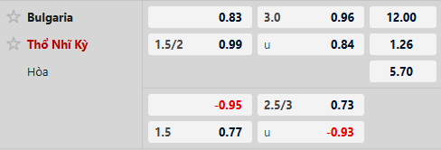 Không quá bất ngờ khi Thổ Nhĩ Kỳ đang được đánh giá cao hơn khá nhiều cùng mức kèo lên đến 1 3/4 bàn. Sức mạnh nhân sự và phong độ của Thổ Nhĩ Kỳ ở thời điểm hiện tại rõ ràng đang vượt trội so với Bulgaria. 2 lần chạm mặt gần nhất, Thổ Nhĩ Kỳ đã toàn thắng trước Bulgaria và sẽ không bất ngờ nếu họ có thể tiếp tục làm được điều tương tự ở màn đụng độ sắp tới.