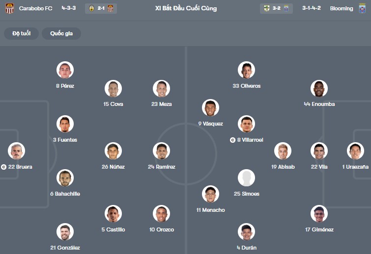 Đội hình dự kiến Carabobo vs Blooming: