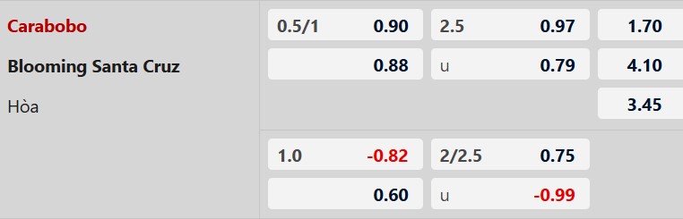 Mức chấp 3/4 bàn là tỷ lệ phản ánh chính xác ưu thế vượt trội của Carabobo khi được chơi trên mặt cỏ quen thuộc. Đội chủ nhà không chỉ có phong độ cao tại sào huyệt mà còn sở hữu hàng công đang vào phom. Trong khi đó, Blooming thường xuyên đánh mất chính mình mỗi khi phải rời xa vùng cao Bolivia. Với việc Carabobo cần 3 điểm để duy trì vị thế trong nhóm đi tiếp, họ hoàn toàn đủ khả năng vượt qua mức kèo này trước một đối thủ có hàng thủ lỏng lẻo như Blooming.