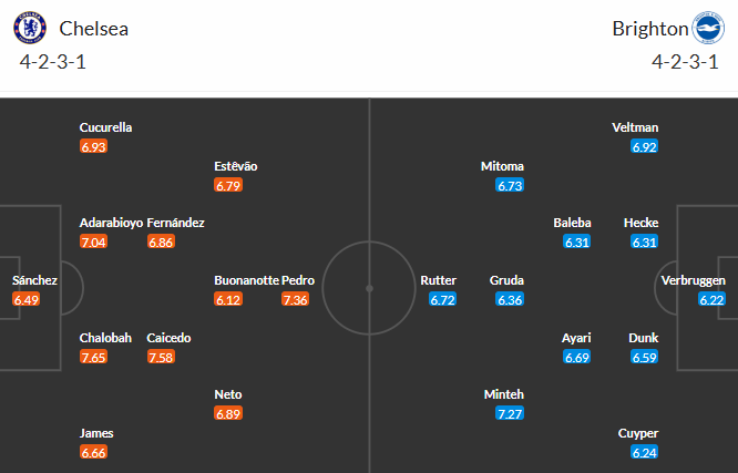 Đội hình dự kiến Chelsea vs Brighton:
