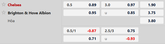 Thông tin kèo bóng đá Chelsea vs Brighton: